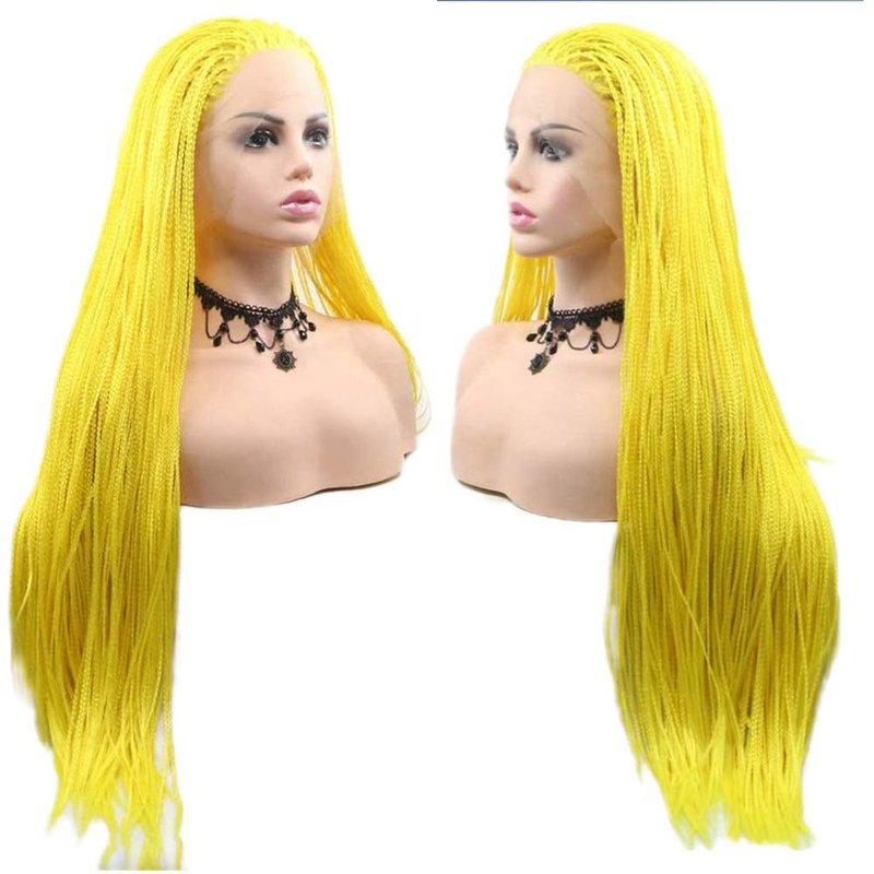 Micro Braided Lace Front Wigs for Black Woment Yellow Box Braid Hair Wig Long Synthetic Hair Wig Frontal Lace Glueless Heat Resistant Fiber Hair for Cosplay Party Use 28inches