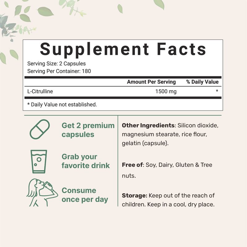 - Micro Ingredients Citrulline Supplement, 1500mg Per Serving (3 Capsules), 360 Counts.