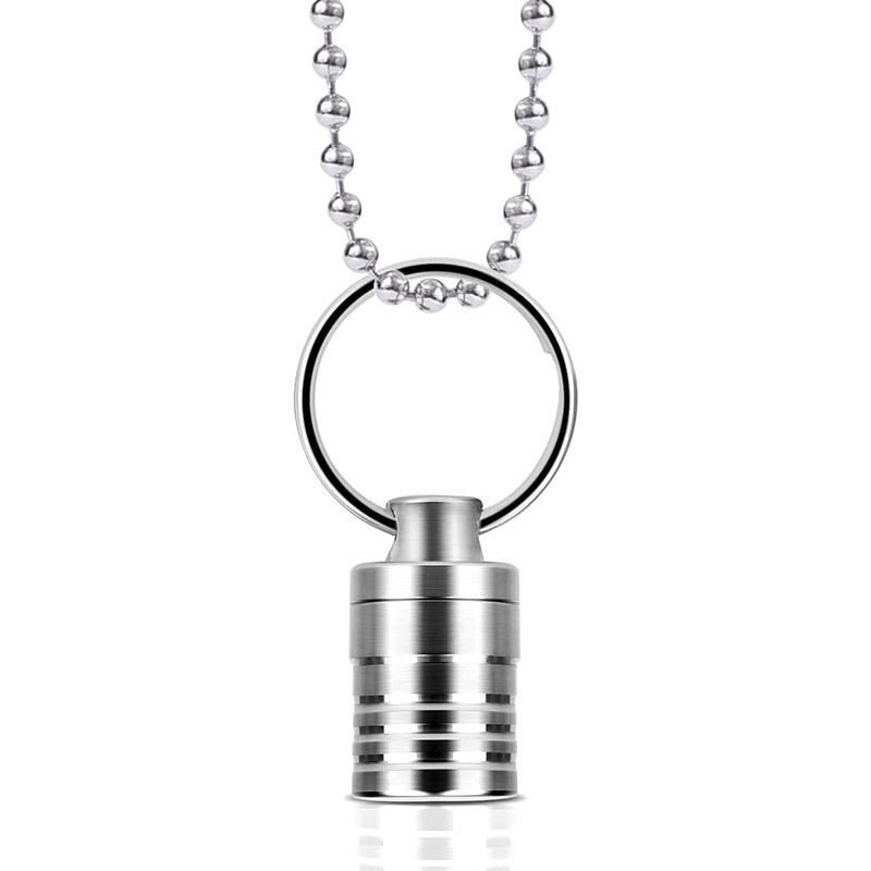 Micro Pill Holder with Keychain Necklace, Opret Titanium Pill Fob Case Waterproof Compact for Emergency Aspirin & Nitroglycerin for Travel Purse Pocket, Gift for Family Friends