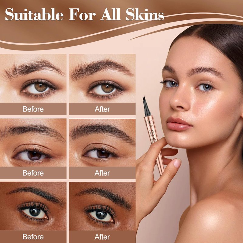 - ✅【Create a Natural and Flawless Eyebrow Look】: This amazing eyebrow pen features an innovative four-pronged 3D tip design, allowing for precise and easy application. The hair-like strokes it creates blend seamlessly with your existing eyebrows. No complicated steps required, instantly shaping a natural and charming eyebrow look for you.