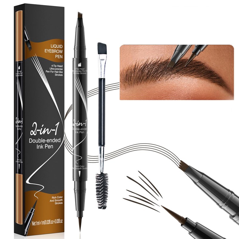 - 【Dual-Sided Precision】: A side offers a liquid eyebrow pencil for precise application, while the other features a waterproof 4-fork-tip microblading pen, ensuring easy blending and grooming AND a separate eyebrow brush is included for that perfect finish