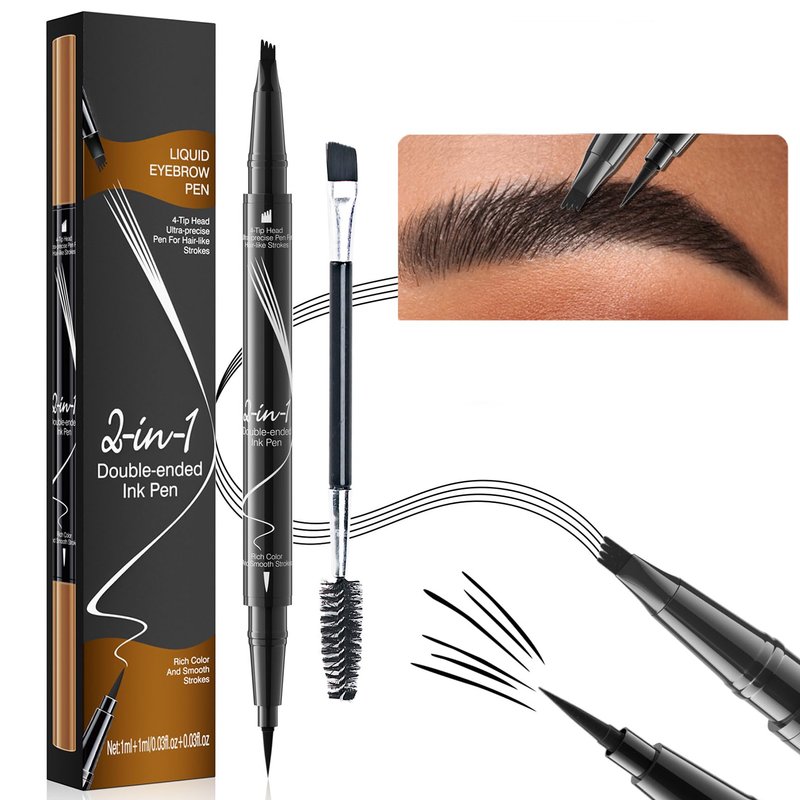 - 【Natural Hair-Like Strokes】: Experience the benefits of both a liquid eyebrow pencil on a side and a waterproof 4-fork-tip microblading pen on the other; We’ve even included a separate eyebrow brush for precise grooming