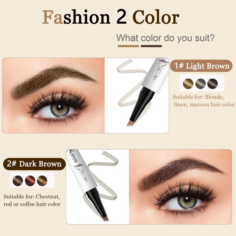 - 【LIKE YOUR REAL NATURAL BROWS】Ruicen upgraded microblading eyebrow pen with 4-prong precision-fork-tip applicator is a god send for people with sparse brows. Designed to transform your brows with natural fullness. Eyebrow microblading pen allows you easily fill, shape and define brows. SUPER QUICK and EASY to achieve ultra-precise, defined & natural-looking full brows in seconds, resembling 3D natural real hair! Eyebrow pencil light brown is for blonde, linen, maroon hair color.