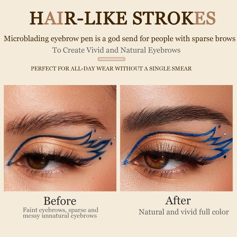 - 【 FOR ALL-DAY WEAR WITHOUT A SINGLE SMEAR】 The liquid microblading eyebrow pen with smooth long wearing, water-resistant NON-DRY formula delivers up to 24 hours long wear if not rubbing the brows too hard. It's waterproof, smudge-proof, sweatproof, transfer-proof. With this all-in-one brow tool kit, You won't worry about smudging from swimming, running or other sports in hot summer. The waterproof eyebrow pen gel can be easily wiped clean with makeup remover.