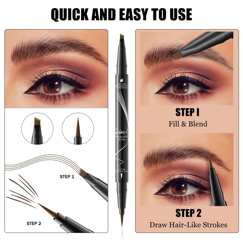 - 【Achieve Natural Hair-Like Strokes】: Our Microblading Eyebrow Pen Waterproof is designed to help you create perfectly-defined brows with natural hair-like strokes. The dual-ended pencil features a precise ultra-fine brush-tip for tiny strokes and a 4-prong fork-tip applicator for shading and filling in sparse areas. With this innovative pen, you can achieve a flawless and natural-looking finish, just like real hair!
