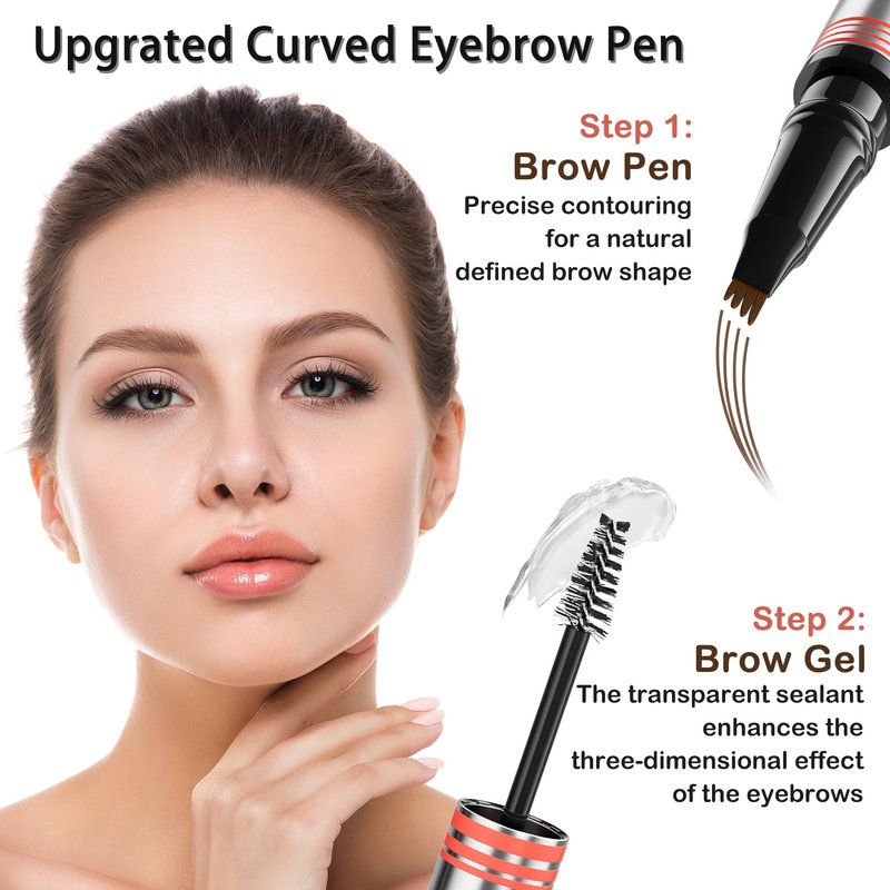 - Dual End Brow Pen & Clear Brow Gel: The advanced microblading eyebrow pen with 4-fork-tip is easy to fill in sparse areas and blend color. Witness the ultra-fast, simple route to achieving impeccably defined, naturally full brows in mere seconds, mirroring the allure of real 3D hair strands!while the clear eyebrow gel enhances and locks the brows in position for non-tight brows. Sweat, smudge and humidity resistant.You also could use the brow gel to your mascara makeup.