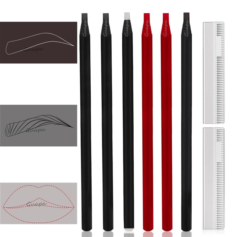 Microblading Supplies Waterproof Eyebrow Pencil-6 Pieces Red Brow Lips Mapping Pencil Set For Marking, Filling, Outlining, Tattoo Makeup Kit And Permanent Makeup Eye Brow Lip Liners (6PCS Mixed Color)