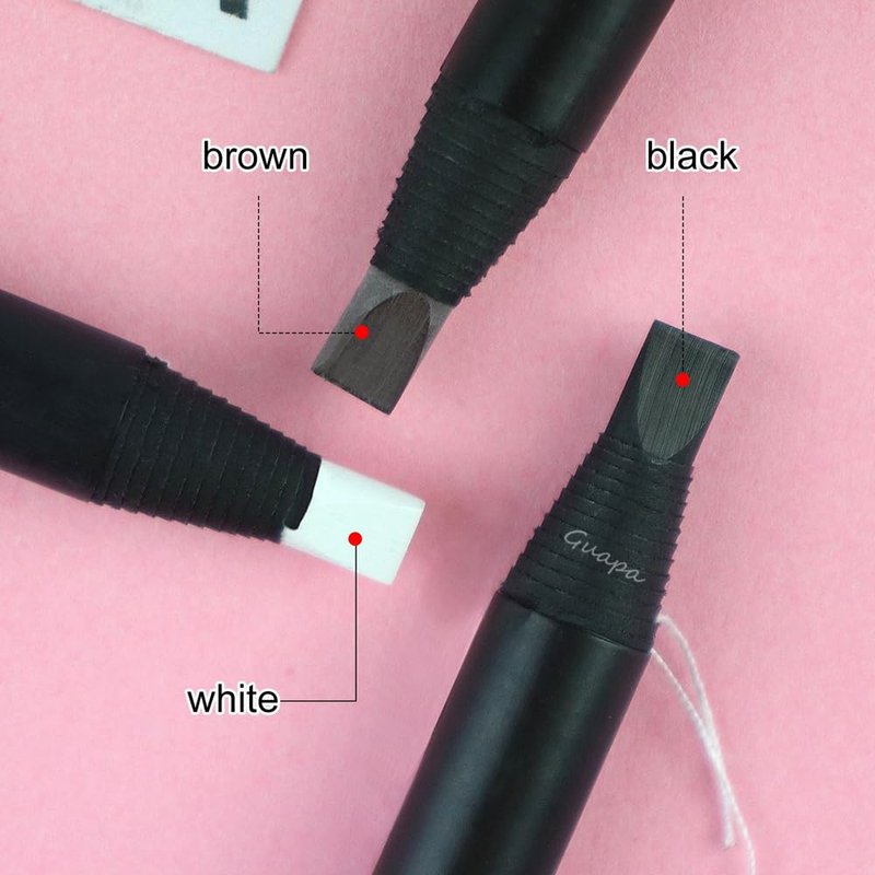 - Pro Tip Microblading Pencil – Shape the point of your eye pencil to fit your needs from hair-like strokes to thick outlines. Simply peel the paper and use your 2 sharpening blades to shave the shape and size you need.