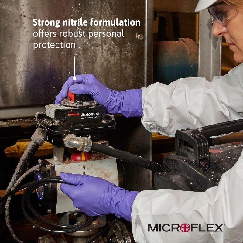 Microflex SU-690 Disposable Nitrile Gloves, Latex-Free, Powder-Free Glove for Cleaning, Mechanics, Automotive, Industrial, or Medical applications, Violet, Size Small, Box of 100 Units