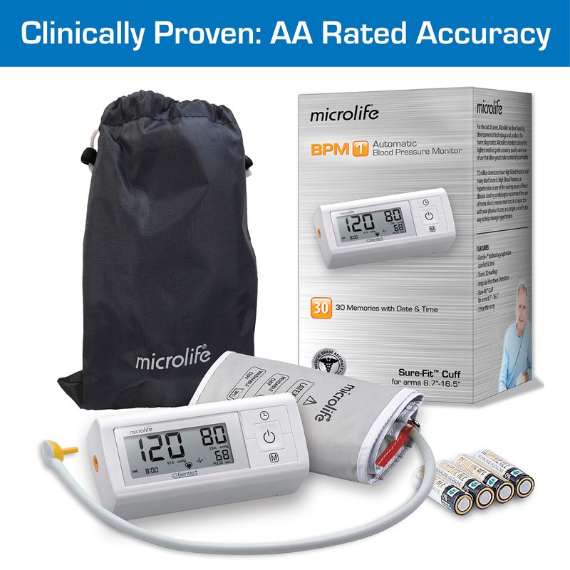 Microlife BPM1 Automatic Blood Pressure Monitor, Upper Arm Cuff, Digital Blood Pressure Machine, Stores Up to 30 Readings