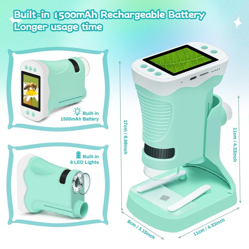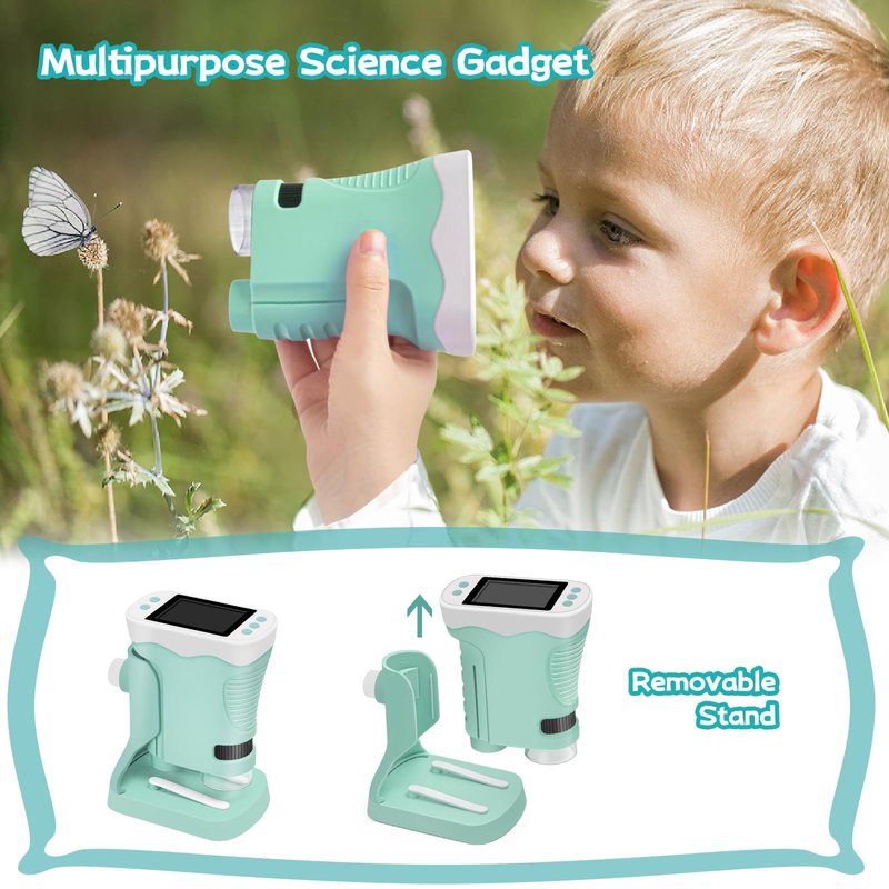 - ➤【3-In-1 Microscope For Kids】 This kids' science toy supports one-click photo and video capture and doubles as a mini telescope. Equipped with a detachable stand, it is highly portable and suitable for use in various locations such as the backyard, park, or during travel. It offers endless fun for children while enhancing their learning experience.
