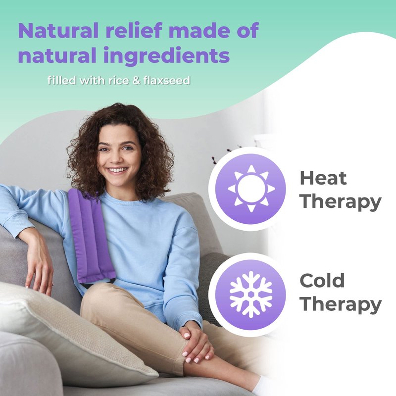 Our purple microwavable heat pad can be effortlessly used for pain relief virtually anywhere on your body. Our moist heating pad allows you to achieve joints, muscles, cramps, neck, shoulder, elbow, knee, and lower back pain relief easily, safely, and conveniently, all without the unwelcome side effects of medication. If you prefer cold therapy for injuries, bruises, or swelling, simply throw our cooling pad in your freezer. It's the ultimate hot and cold pain relief pad! Our neck and shoulder pad heats up quickly and easily molds itself into each and every part of your body to provide soothing, comforting relief. Our cooling/heating pack features an ideal weight that helps hold it in place to deliver gentle and effective cold/heat therapy pressure. Say goodbye to cold offices or homes and say hello to the warmth provided by our microwavable moist heating pads. Our microwave heat pack utilizes flax and rice which are natural ingredients that excel at holding heat for long periods of time to keep you warm and cozy no matter where you are. Each cold/hot therapy heating pad is made using the finest materials available. Our pain relief pad features a super soft fleece on one side that gently hugs your skin and provides you with calming heat while the cotton on the other side can be used for extra heat retention. Our shoulder and neck pain relief pads make a great gift for birthdays, holidays, or just because! Give that special someone a gift they can use again and again to relieve shoulder, neck, stomach, muscle, joint, and lower back pain whenever they need to.