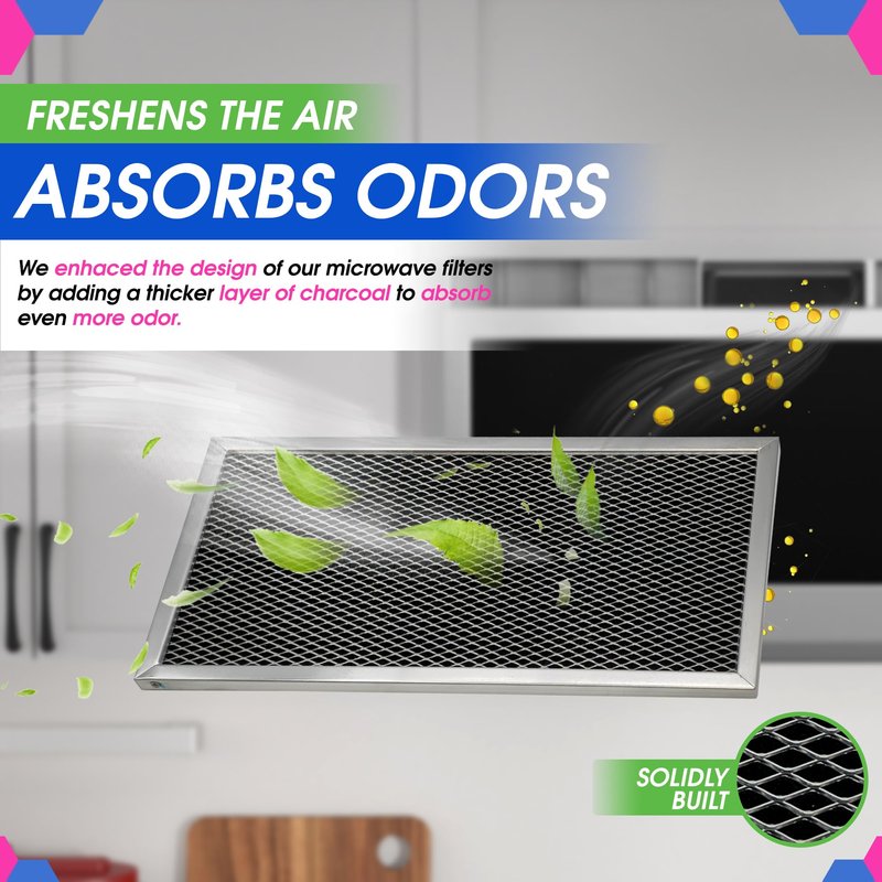 - ENHANCED FILTRATION: A microwave charcoal filter will freshen up a kitchen and our microwave hood vent filter is loaded with activated charcoal to enable it to absorb even the toughest odors.