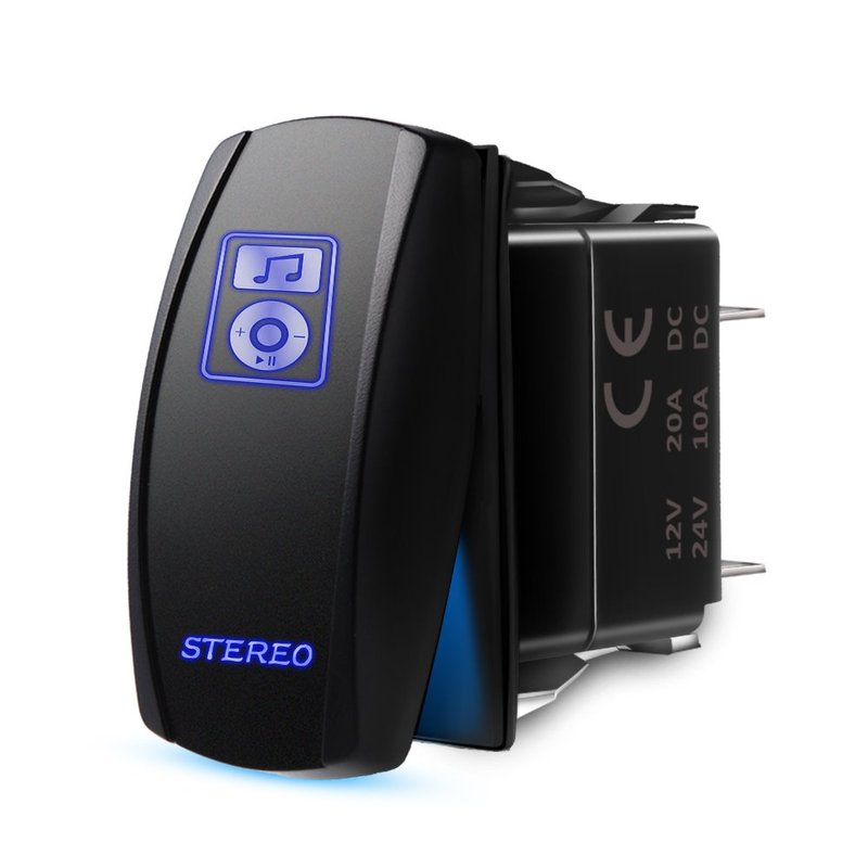 MICTUNING LS083601JL Laser Stereo Rocker Switch Kit, On/Off LED Light, 20A 12V, Blue