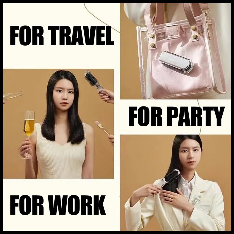 - The mini hair brush is collapsible and can be folded up when not in use to save space.