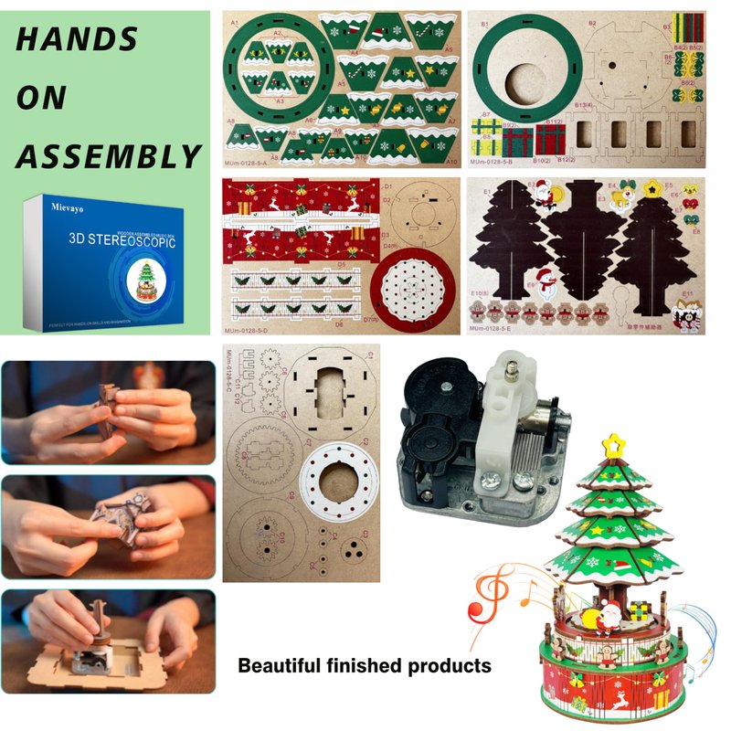 - wooden puzzles for adults -The is a gift for children, assembled from parts by turning a mechanical spring at the bottom, and the Christmas tree tree and Santa Claus rotate to the music.