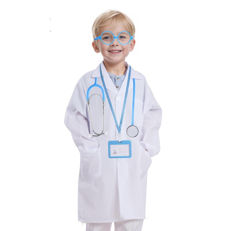 - FUN DOCTOR COSTUME: By wearing this Doctor Lab Coat with Stethoscope, ID Card and Glass, your child can learn about the world of doctor in a hands-on and interactive way. They can conduct pretend experiments, and explore the wonders of the natural world.