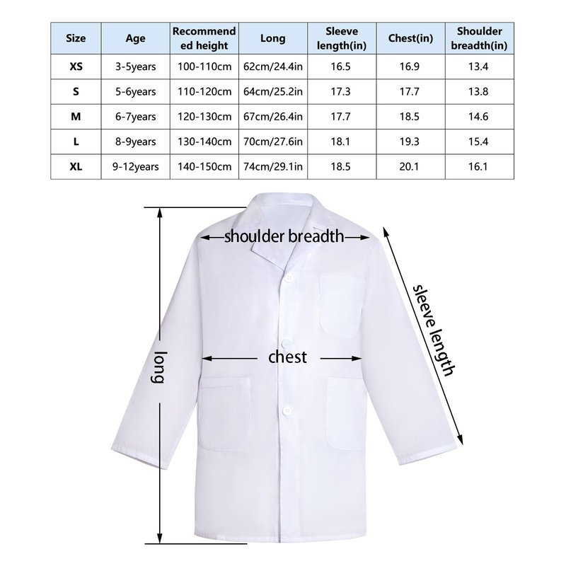 - EASY TO USE AND WEAR: The doctor scientist costume kids lab coat with Stethoscope is easy to put on and take off. Kids scientist lab coat are designed with button and two pockets. They are designed to have a loose fit, making it easy for kids to move around and play comfortably.