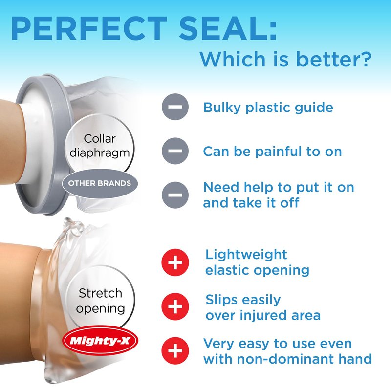 - ✅ EASY TO USE — Our cast protector for shower arm adult easily stretches over a cast without the need of assistance. You can easily put it on and adjust it one-handed. Our Mighty-X arm cast covers for shower adult do not require a bulky collar seal or additional fasteners to be watertight.