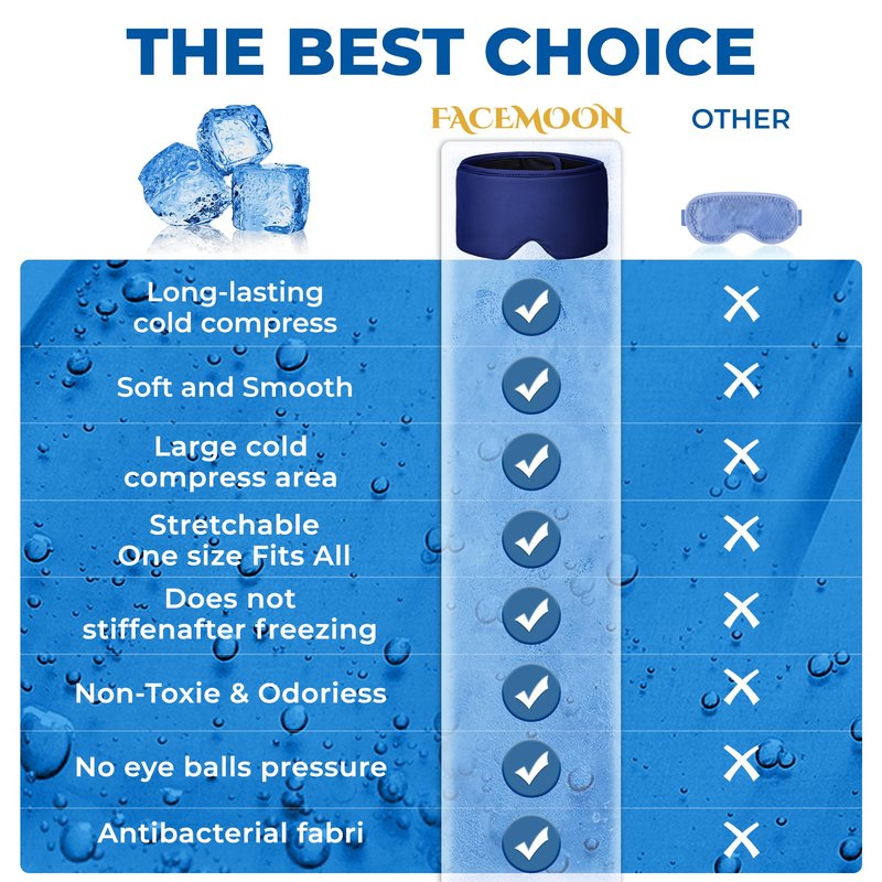 - Long-Lasting Ice Cooling Comfort: FACEMOON cooling eye mask stays cold longer, thanks to thicker high-quality medical-grade gel. It effectively soothes puffy eyes, dark circles, headaches, and migraines.