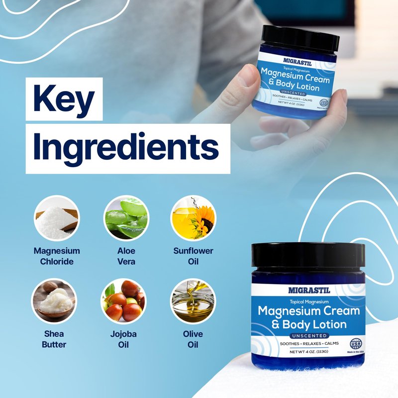 - High Quality: Migrastil Magnesium Cream is made in the USA from the finest ingredients. Natural, Vegan, and Cruelty-Free.