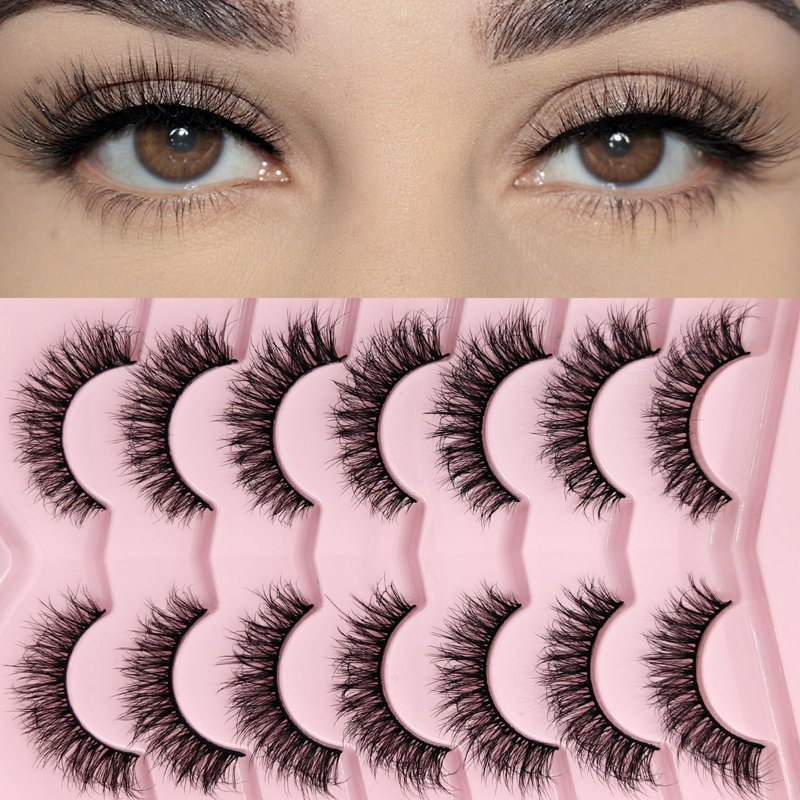 MIKIWI Natural False Eyelashes,Soft and Wispy Natural Look Lashes 7 Pairs Strip Lashes Feathery Lashes