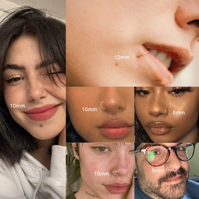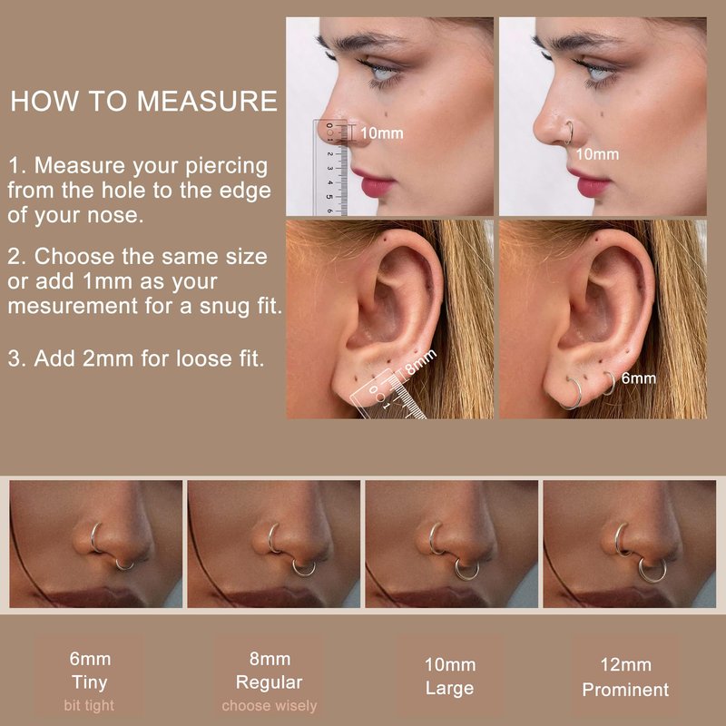- ✨[Nose Hoop Size]-- 5Pcs G23 titanium multi-color hoop clicker sleeper earrings are in same size, 16 Gauge (thickness: 1.2mm), inner diameter 6MM/8MM/10MM/12MM are available. Please check the inside diameter carefully according to the SIZE CHART OF THE HOOP NOSE RING. Select the most suitable size for yourself.
