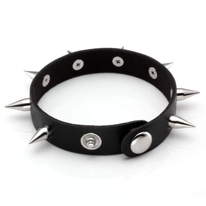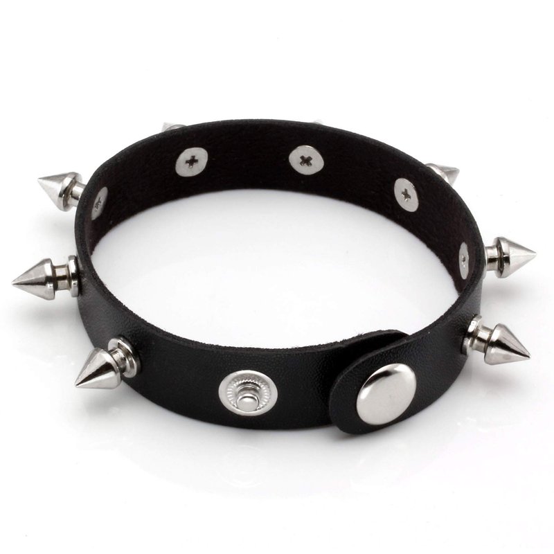 - Wide Leather Bracelet with Spike Rivet decor & Adjustable Snap Button.
