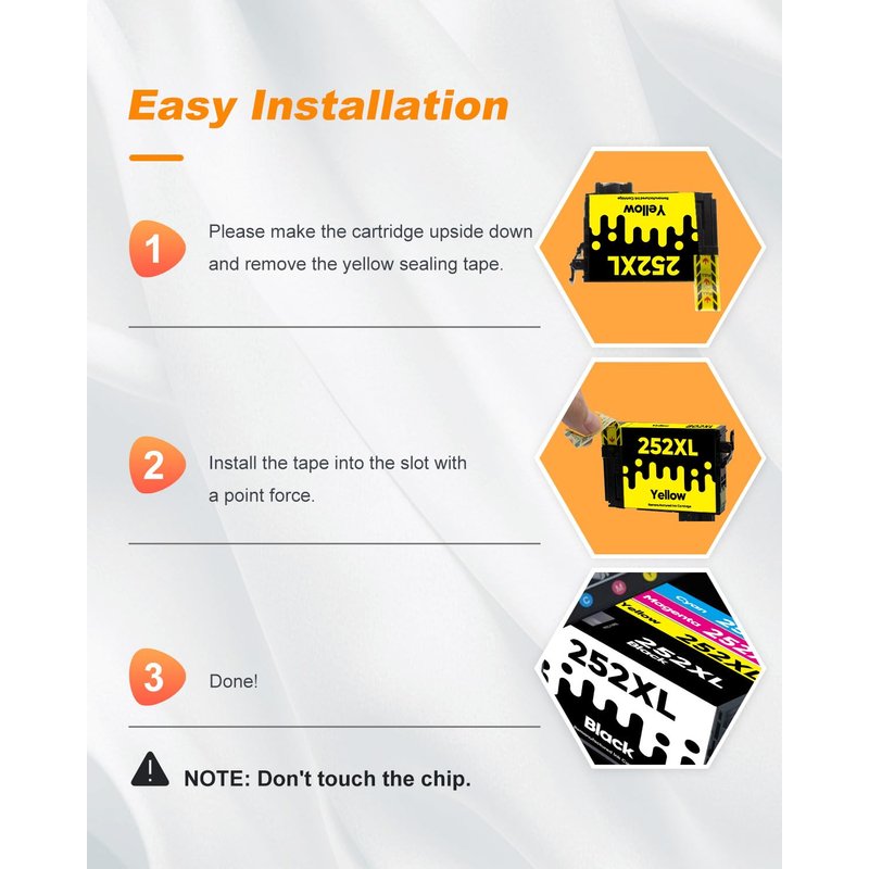 - 252 XL Remanufactured for Epson 252 XL Ink Cartridges undergoes a strict experiment to ensure crisp sharp black text and vibrant color day to day printing.