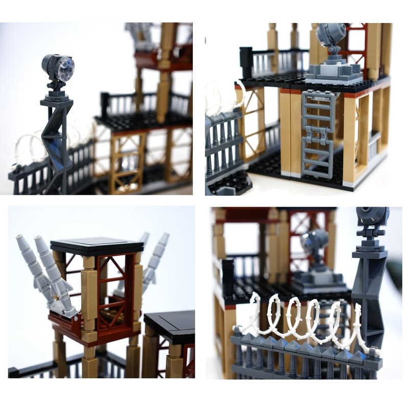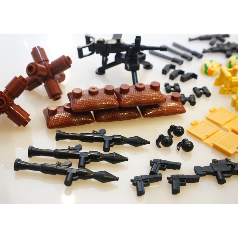 - Not another bag of just weapons. This is boxed professionally with many pieces to build a military base guard tower and also many pieces to fit minifigures such as firearms, holsters, grenade, heavy body armor.