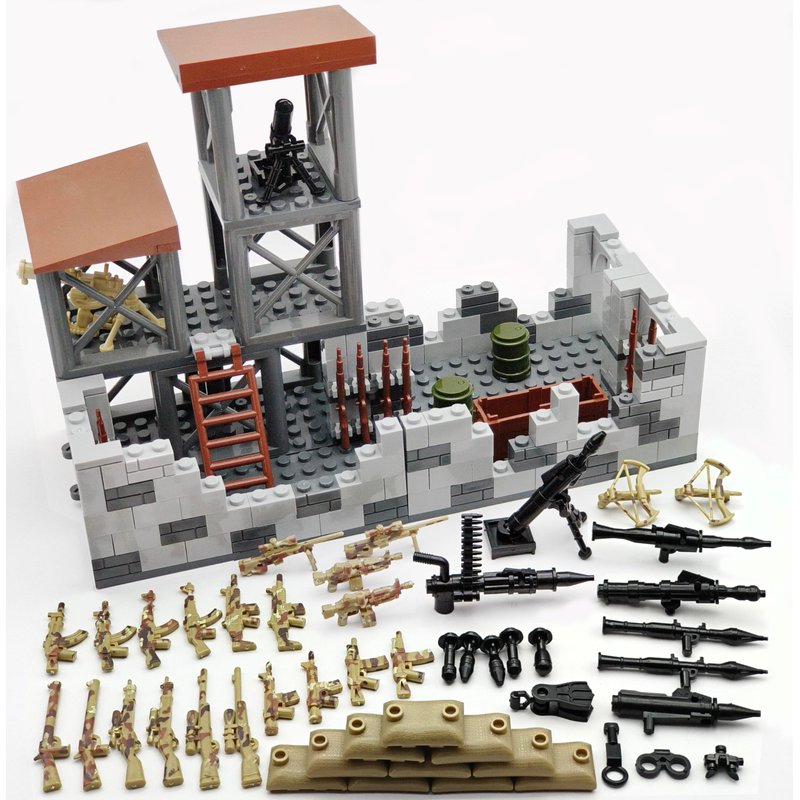 Military Base Building Block Sets for Army Minifigure War Accessories,Flexible and Movable Military Guard Tower Guns Weapons Toys for Kids,MOC Small Particle Assembled Building Blocks