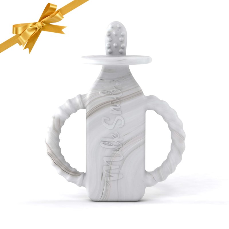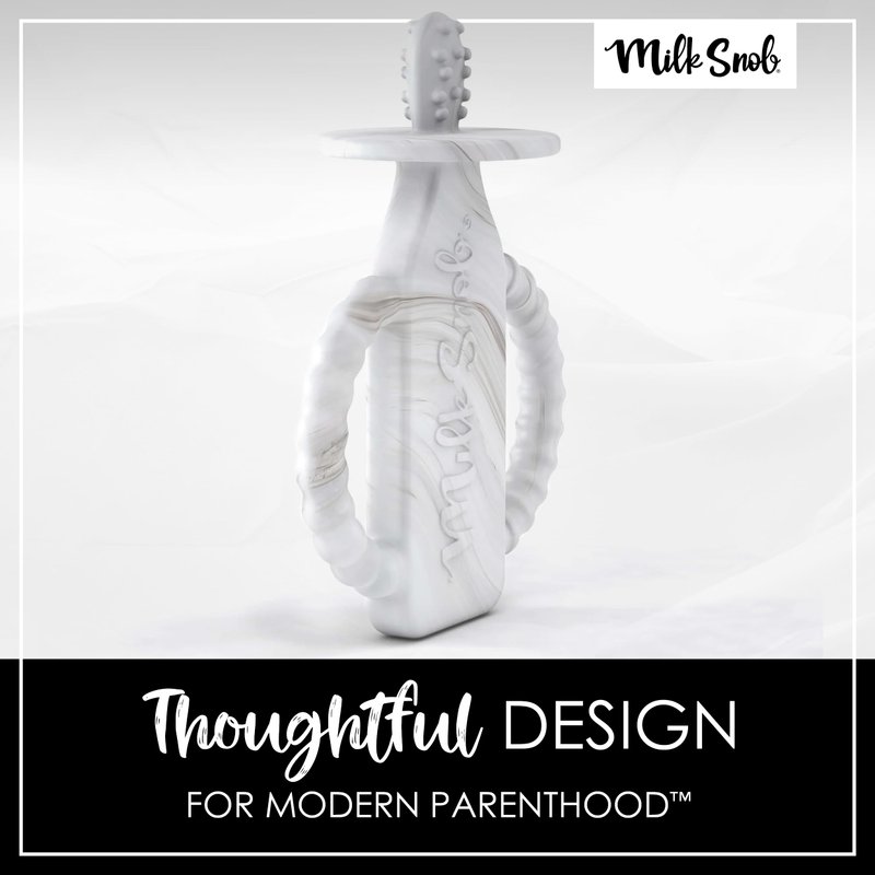 - Perfect for Teething Gums: Any parent can rest assured that their little one is safe when it comes to Milk Snob baby products. Our baby teething toys are made with 100% food-grade silicone and designed for babies 3 months old and up, with or without teeth. Color: White base with swirls of brown/grey.