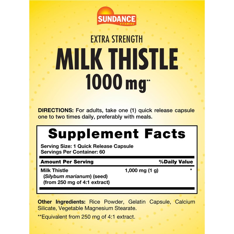 Milk Thistle 1000mg | 60 Quick Release Capsules | Traditional Herbal Supplement | Non-GMO and Gluten Free Formula | by Sundance