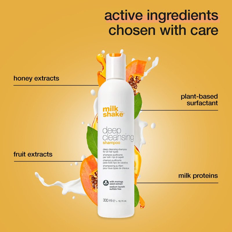 - milk_shake deep cleansing shampoo gently removes styling product residue and chlorine from hair and scalp. It cleanses hair deeply but gently, maintaining its moisture balance.