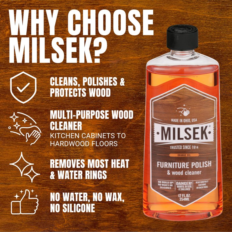 - Cleans, Polishes, and Protects with Precision: Milsek Furniture Polish and Wood Cleaner with Orange Oil not only cleans your wood surfaces but also brings out their natural luster, ensuring long-lasting protection against everyday wear and tear