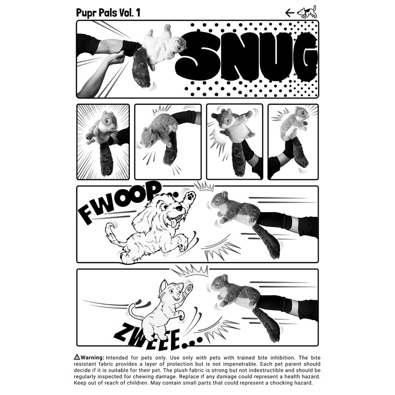 Have you ever played with your dog? We don't mean games like fetch or tug of war. Not how humans play but how dogs play. When puppies are learning how to play, they can be nippy, ear pulling, tail biting, little wrestlers. It's difficult for us to play with our puppies in the way that they are used to. We were tired of all the toys on the market that were designed to be given to our dogs. We wanted to play with them. We wanted to make a truly interactive dog toy that considered both the dog and owner. Pupr Pals are lovable plush animals that your dogs can befriend, and puppets for interactive play. They allow you to play with your dog in a way that mimics how dogs play with each other. We developed Pupr Pals dog puppets because we wanted to make an interactive dog toy for both pets and their parents. The puppet has elements to stimulate the dog during play, and protective elements for the owner. Hidden squeaker in the throat and extra crinkly tail stimulate your dog's prey drive and keeps them entertained during playtime. Padding on the inner lining of the puppet protects against sharp puppy teeth during play. Robust arm sleeve protects against sharp nails and prevents playful scratches. Great enrichment tool for tiring, exercising, and training energetic puppies. Bond with your dog in a new way. Hide toy when not in use to maximize life. Have fun bringing the inner puppy in your dog back to life! Designed in the USA. Patent Pending.