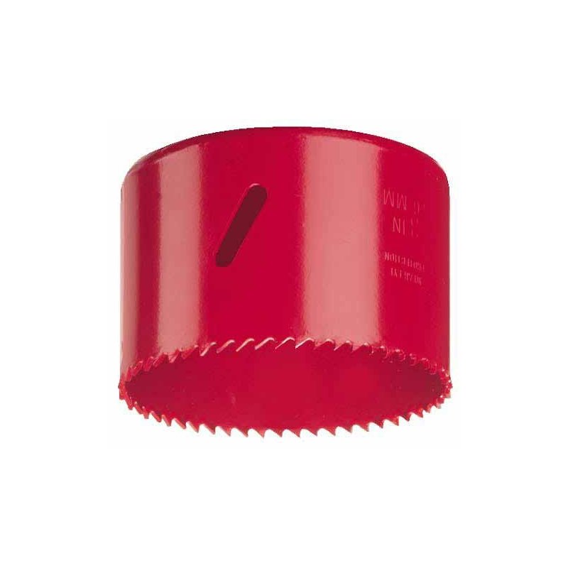Milwaukee's Carbide Tipped 3 teeth per inch Hole Saws provide longer life and faster cutting when holes are needed in ceramic tile, flakeboard, fiberboard, fiberglass and wood. Carbide Tipped Hole Saws are NOT recommended for use on metal. Select arbor depending on the size of the drill being used and the size of hole saw being driven. One per package.FEATURES: 2-1/4 in. (57 mm) diameter. 1-1/2 in. depth of cut. Bi-metal 6 teeth per inch design. Sturdy 3/16 in. thick steel back