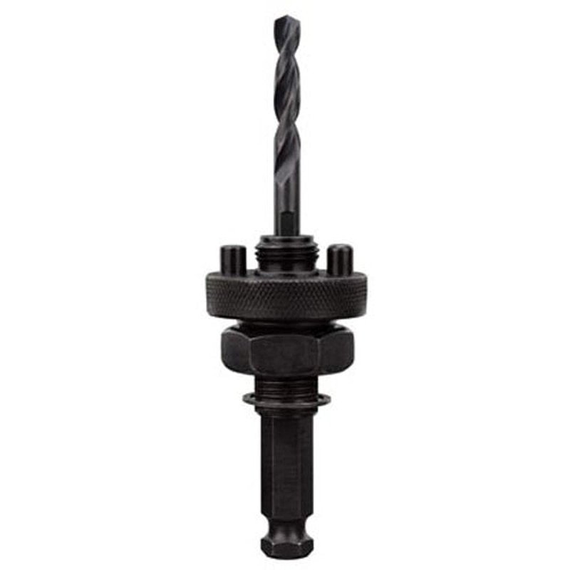 - Tool-free operation. Universal, quick change with all brands of hole saws. No adapters required. Durable hardened steel construction. Fits all hole saws 1-1/4 in. and larger. Fits all drill chucks 1/2 in. and larger