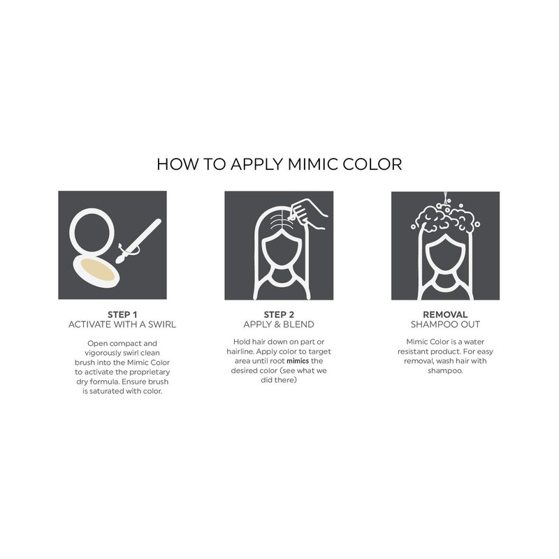 Applied to the narrow band of new growth, MimicColor creates the illusion of matching the surrounding hair color. You'll control the depth of color by how much MimicColor you brush on, similar to applying blush. Our five shades will camouflage a wide range of colors.