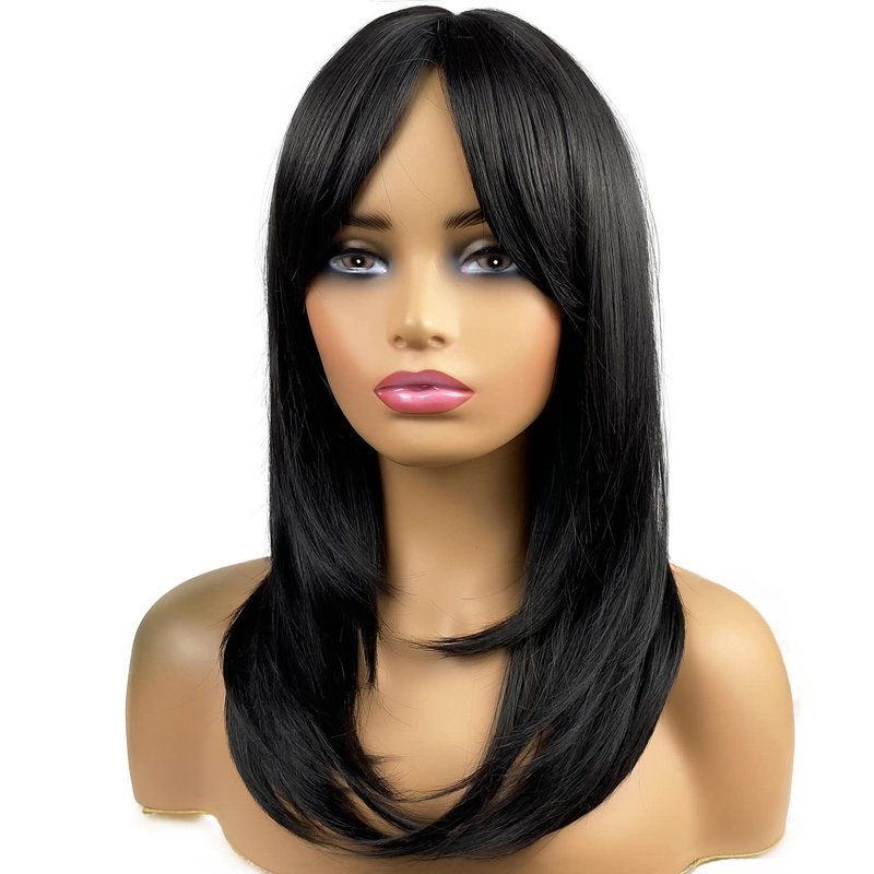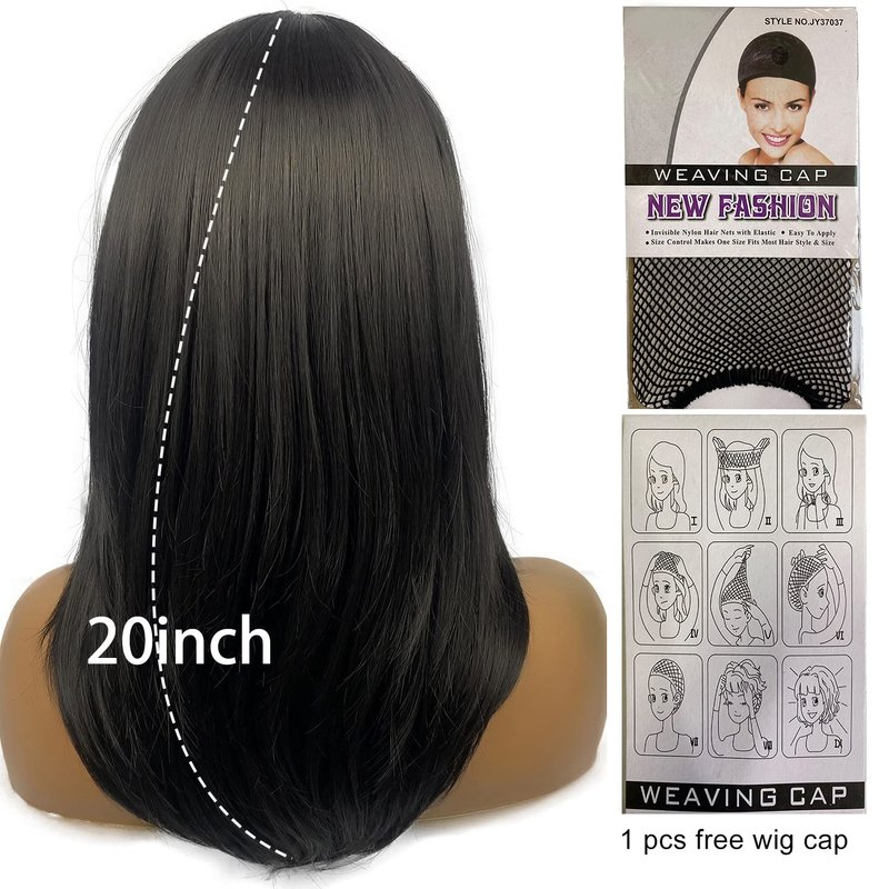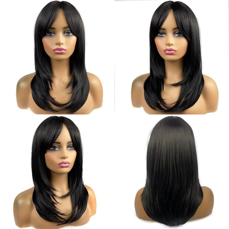 Long Black Wigs for Women,Black Wigs with Bangs Layered Shoulder Length Synthetic Wig for Daily Party (20 inch)