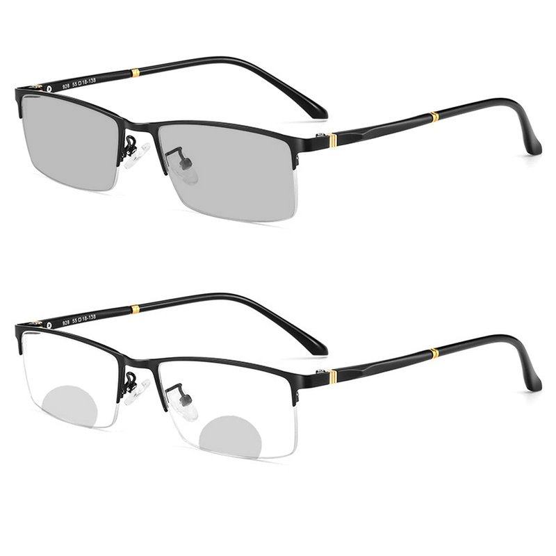 mincl Transition Photochromic Rectangular Frame Bifocal Reading Glasses For Men Women Clear Sunglasses Readers UV400 (black, 0.00/+1.75 magnification)