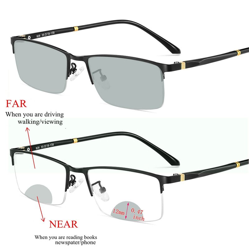 Advanced Bifocal reading sunglasses, the upper optical area of the lens is used for the far view, and the lower optical area is used for near view. Photochromic lenses are also referred to as light-sensitive lenses". Glass lenses are adding silver halide, but now is the mainstream of photochromic resin lenses, adding of spiro and other chemicals in the acrylic resin lens, so that the original colorless and transparent lenses, in bright light, will become colored lenses, to do the protection, so is suitable for indoor and outdoor use.