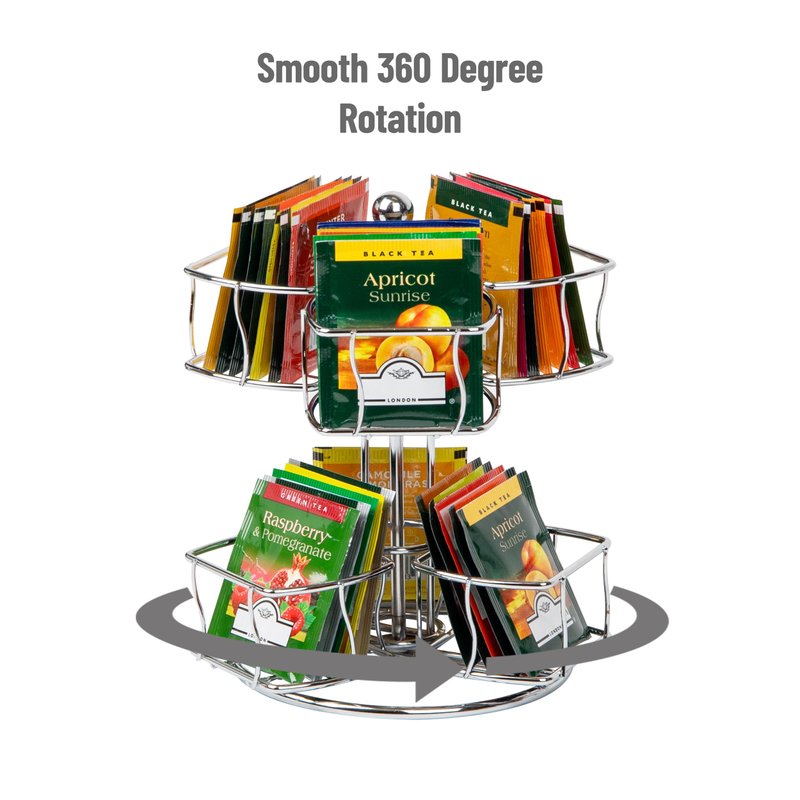 - Efficient and accessible: The two-tier carousel design enables easy visibility of the products, reducing the time spent searching for your desired tea or condiment