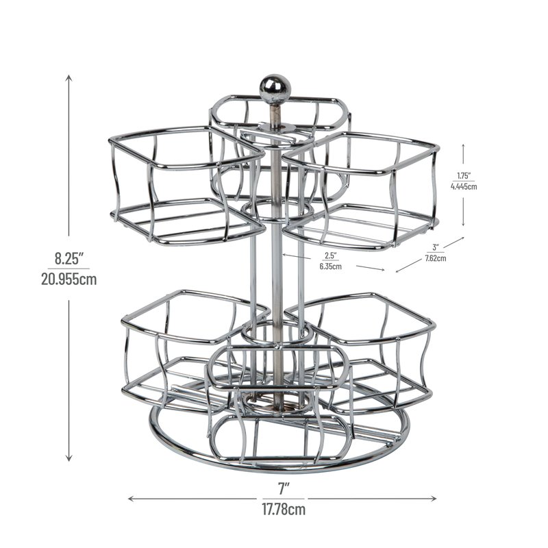 - Dimensions: When fully assembled, this 6-compartment tea and condiment carousel measures 7 inches wide x 7 inches deep x 8.25 inches tall (17.78 x 17.78 x 20.96 cm)