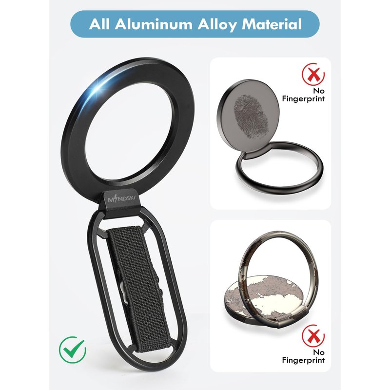 Mindsky All Aluminum Alloy Upgrade for Mag-Safe Phone Ring Holder with Finger Strap,Removable Ligament Ring Holder, Compatible iPhone15/14/13/12 Series,Android(Comes with1magnetic Ring)