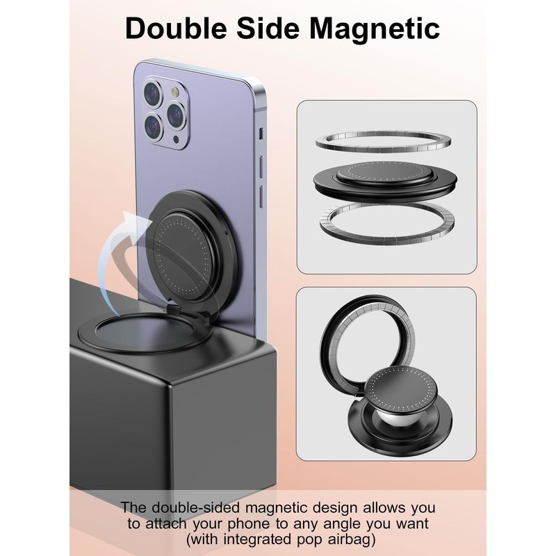 Mindsky Magnetic Phone Grip-Ultralight Aluminum Alloy 2024 New Double-Sided Magnetic Stand+pop airbag Ring 2-in-1 Compatible iPhone15ProMax/14/13/12series,Android,Tablet(Comes with 1 Magnetic Ring)