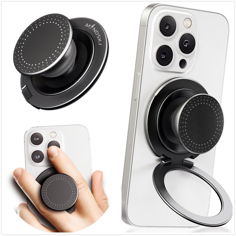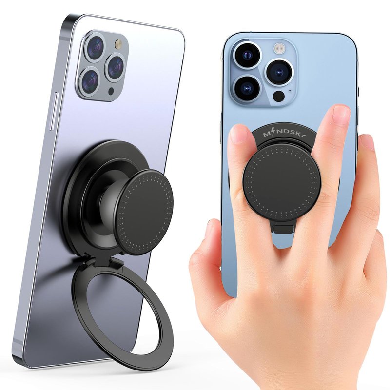 - 【Universal Compatibility】 This Mindsky Magnetic holder grip compatible with iPhone with Magnetic phone and certified Magnetic Cases,also compatible with non-magnetic phones and standard phone cases with thin metal rings (1 Magnetic ring provided) on their backs.
