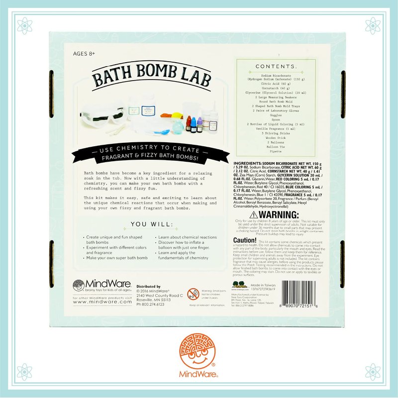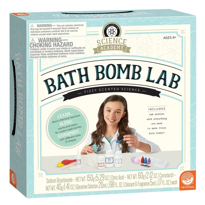 MindWare Science Academy Bath Bomb lab - A 20pc DIY Experiment kit for Boys & Girls - Make 4+ Bath Bomb Experiments - Great Gift for Children & Teenagers