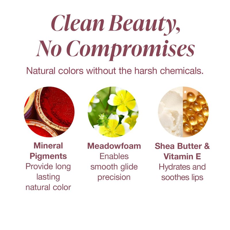 - Natural Formula: Get precision lines without feathering. Formulated with Shea Butter, Meadowfoam and Vitamin E to hydrate and soothe delicate lips. Vegan, toluene free, camphor free