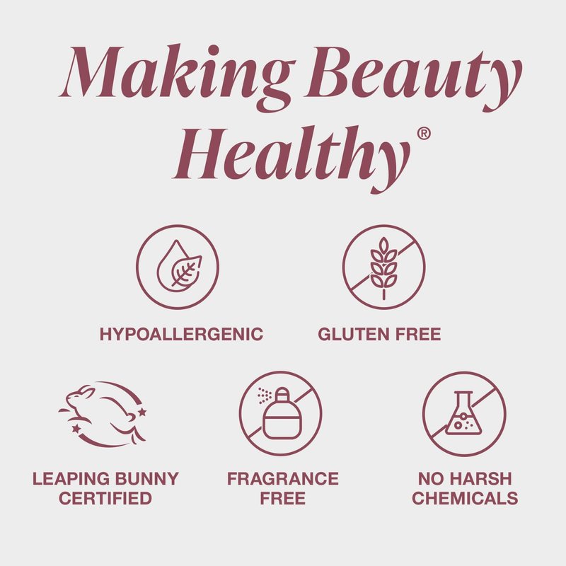 - Natural Cosmetics: We select effective natural ingredients and ensure our products are free of gluten, parabens, talc, artificial colors, synthetic fragrances, SLS and phthalates. We NEVER conduct animal testing